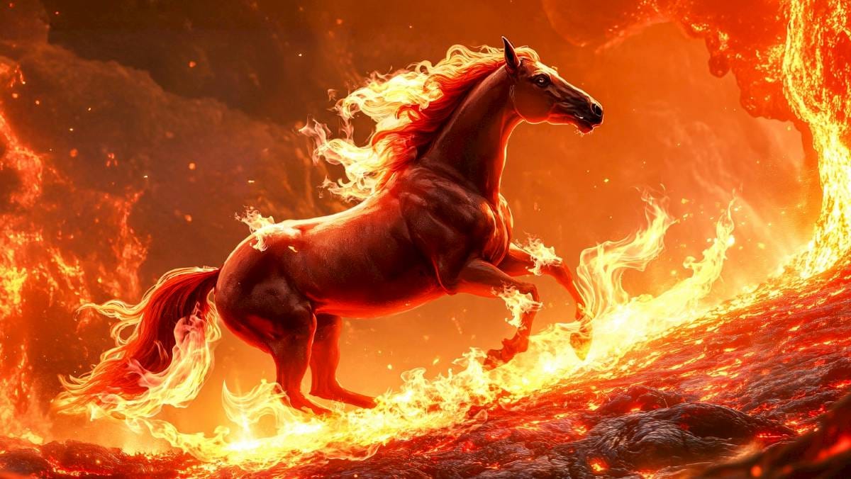 È iniziato l’anno del cavallo di fuoco. Come per tutti gli altri abbinamenti tra uno dei dodici segni-animali e uno dei cinque elementi dello zodiaco cinese, anche questo si verifica ogni sessant’anni e ha caratteristiche sue peculiari. Nello specifico, il cavallo e il fuoco, messi insieme, promettono esiti fin troppo scoppiettanti: le caratteristiche particolari del cavallo (vivacità, energia, indipendenza, ma anche testardaggine e una certa mancanza di tatto) e del fuoco (passione, coraggio, slancio, ma anche impulsività) creeranno insomma un mix discretamente esplosivo.